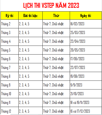 ĐĂNG KÝ THI VSTEP Đăng ký thi tại: 351A Lạc Long Quân, P.5, Q.11, TP. HCM Lệ phí thi: 1.800.000đ/ học viên Hồ sơ thi : – Phiếu đăng ký dự thi – 2 ảnh 4×6 – 1 bản photo CMND/ CCCD/ Hộ chiếu LỊCH THI VSTEP NĂM 2023